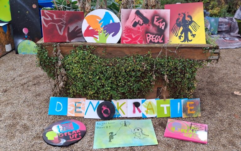 Im Rahmen des Bundesprogramms "Demokratie leben!" und der "Koblenzer Wochen der Demokratie 2025" gab es am 13.11. im Garten Herlet ein besonderes Lern- und Begegnungsformat: statt Unterricht im Klassenzimmer gab es Workshops, Gesprächsinseln, kreative Aktionen und viel Raum für eigene Ideen. Schülerinnen und Schüler des Fachbereichs Farbe+Raum/Maler- und Lackierer und beide Gärtnerklassen der Julius-Wegeler-Schule setzten sich aktiv mit den Grundwerten demokratischen Handelns auseinander. Die gemeinsame Aktion im Garten Herlet wurde zum öffenlichen Raum und Lernort und gleichzeitig zu einem Zeichen für Vielfalt und Respekt.